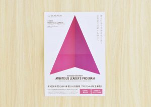 壁に貼って学生募集ポスター、手に取ってニュースレター